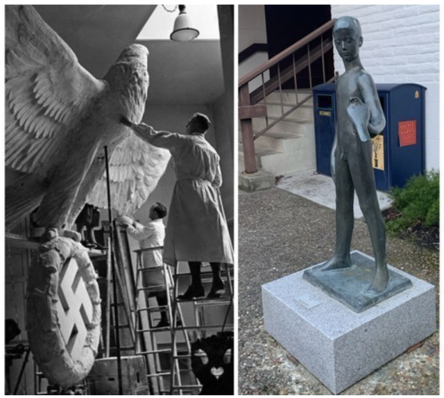 Historians just getting word about the work’s removal admit von Graevenitz (b. 1892 – d. 1959) was a favorite of the Nazi hierarchy and was photographed sculpting works for party members and buildings – although he was not a member of the Nazi Party himself. He was, however, a member of the Militant League for German Culture, a group given to the promotion of Nazi values in art and culture in Germany.