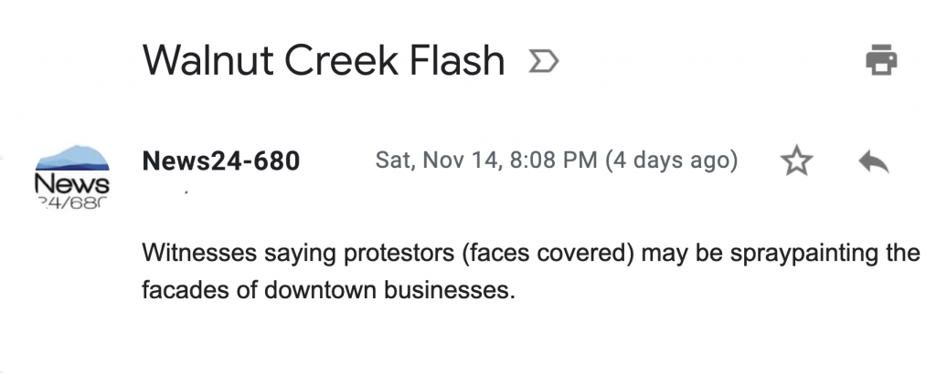 This message was released Tuesday by Walnut Creek Police Chief Jay Hill in response to criticism – leveled largely on social media – of his department’s response during a weekend protest this site covered as it happened Saturday evening. During the incident, approximately 80 protesters blocked downtown traffic, set fire to Trump 2020 and Gadsden flags,…