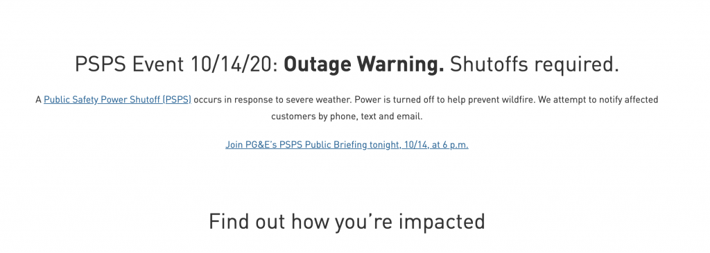 From the Town of Danville: Dry conditions and high winds have increased the chances of a potential wildfire situation, prompting PG&E to institute a Public Safety Power Shutoff (PSPS) that will affect an estimated 1,850 Danville homes. The PSPS event is set to begin between 6;00 – 8:00 p.m. Oct. 14, 2020 with residents affected…
